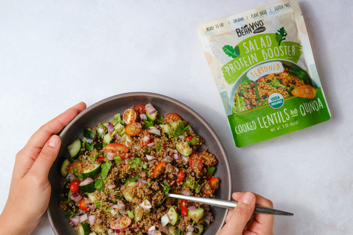 This mouthwatering Southwest Protein Salad is not only delicious and ready in minutes, but is packed with over 10g of protein from healthy sources like lentils & quinoa! Pump up your lunch or dinner with BeanVIVO 😉