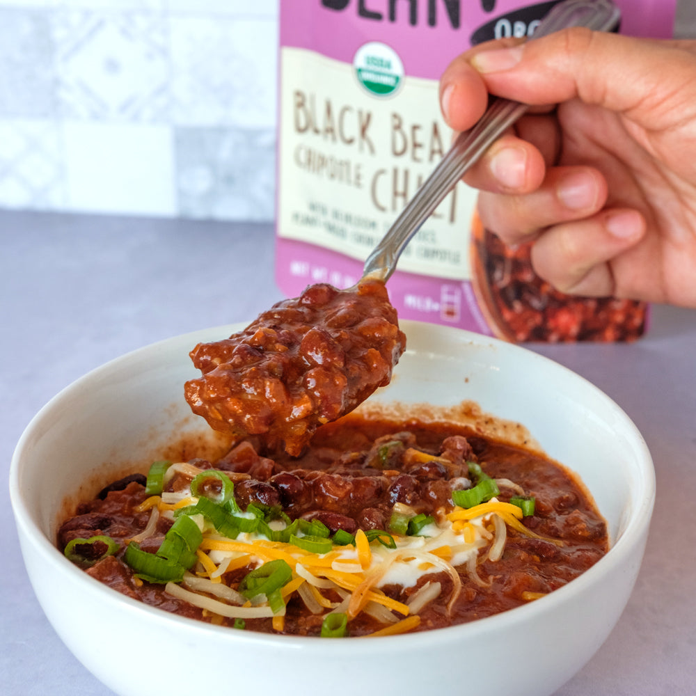 Packed with FlavorOur black bean vegan chili recipe is packed with protein and flavor, leaving you AND your tastebuds satisfied. Say "goodbye" to bland vegan alternatives.